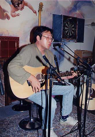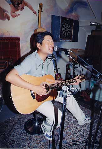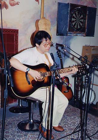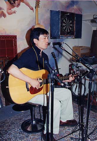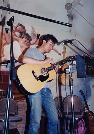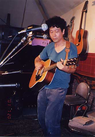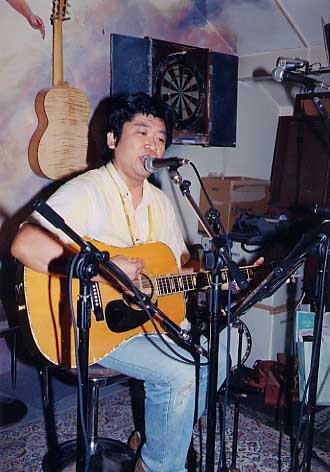いどむさんです。 自作の歌を演奏していただきました。 D−28もいい音で鳴っていました。 Photo by 染村 |